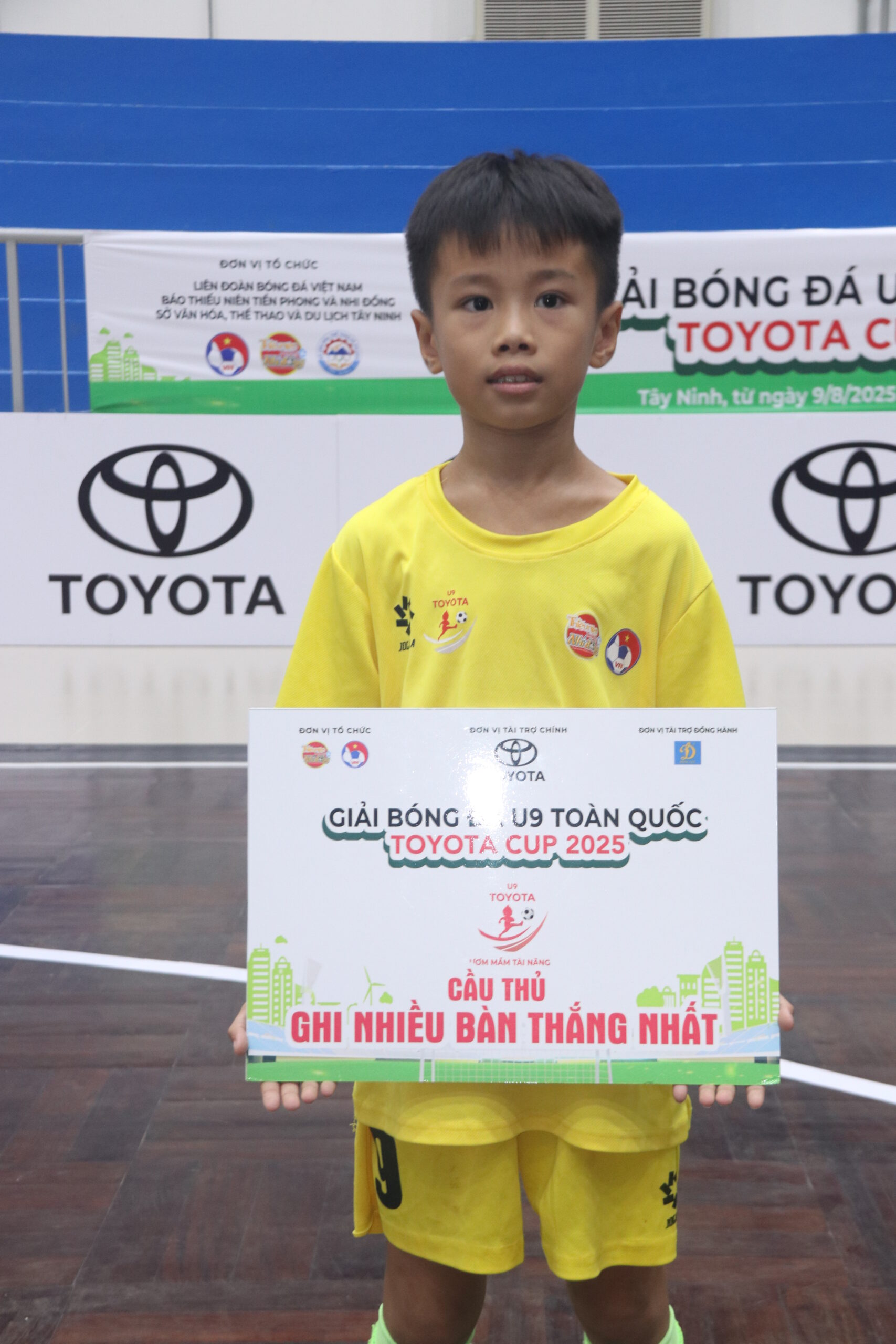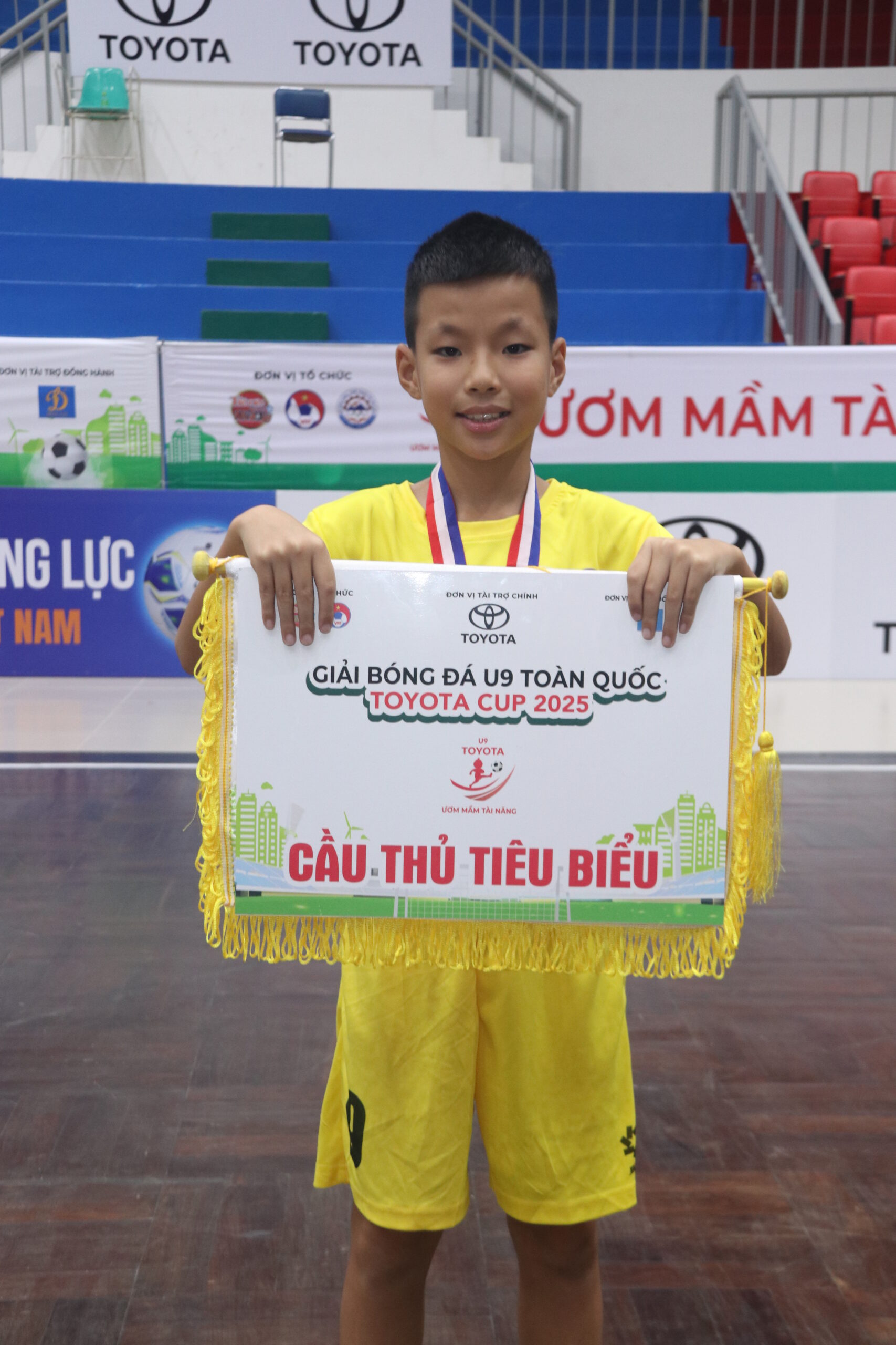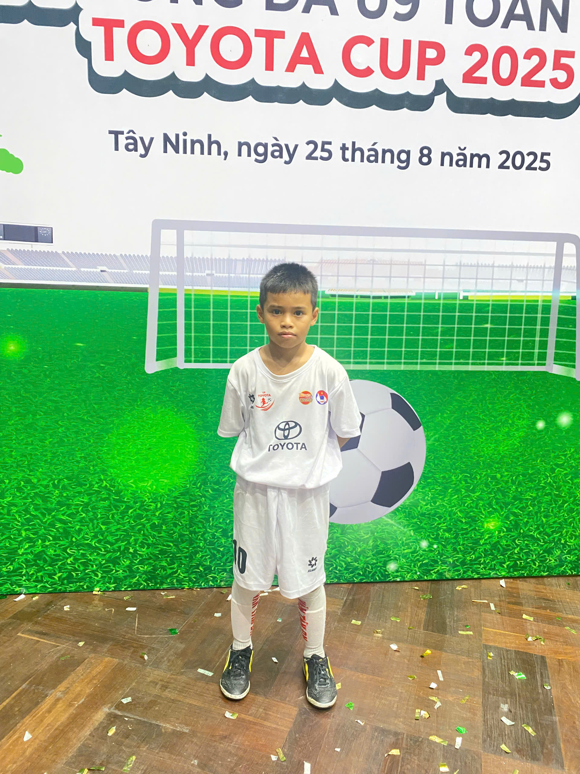 Cao Đăng Khôi là cầu thủ xuất sắc của Giải Bóng đá U9 toàn quốc Toyota Cup 2025 với thành tích ghi tới 12 bàn thắng. Thi đấu ở vị trí tiền đạo, Khôi luôn biết cách bùng nổ trên sân với những pha dứt điểm chính xác, mang lại nhiều cảm xúc cho khán giả. Ngoài bóng đá, bạn ấy còn có tài… nhảy hiện đại nữa đấy.