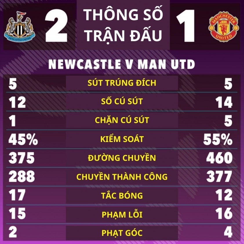Cuộc đối đầu diễn ra đầy kịch tính khi Newcastle dù phải chơi thiếu người vẫn giành trọn 3 điểm nhờ khoảnh khắc tỏa sáng ở phút 90 của William Osula. Tiền đạo vào sân từ ghế dự bị đã thực hiện pha bứt tốc mạnh mẽ trước khi tung cú cứa lòng chân trái tuyệt đẹp, đưa bóng găm vào góc xa khiến hàng thủ Man United hoàn toàn bất lực.
