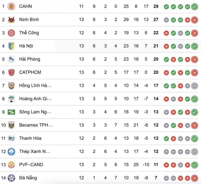 CLB Nam Định đã rơi xuống vị trí thứ 12 trên BXH sau 2 trận hòa liên tiếp