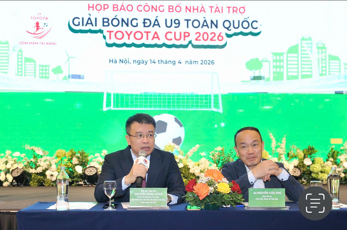 Sáng nay, ngày14/4 tại Hà Nội, Báo Thiếu niên Tiền phong và Nhi đồng, Liên đoàn Bóng đá Việt Nam cùng Công ty Ô tô Toyota Việt Nam phối hợp tổ chức Lễ Họp báo công bố Nhà tài trợ Giải Bóng đá U9 toàn quốc Toyota Cup 2026.