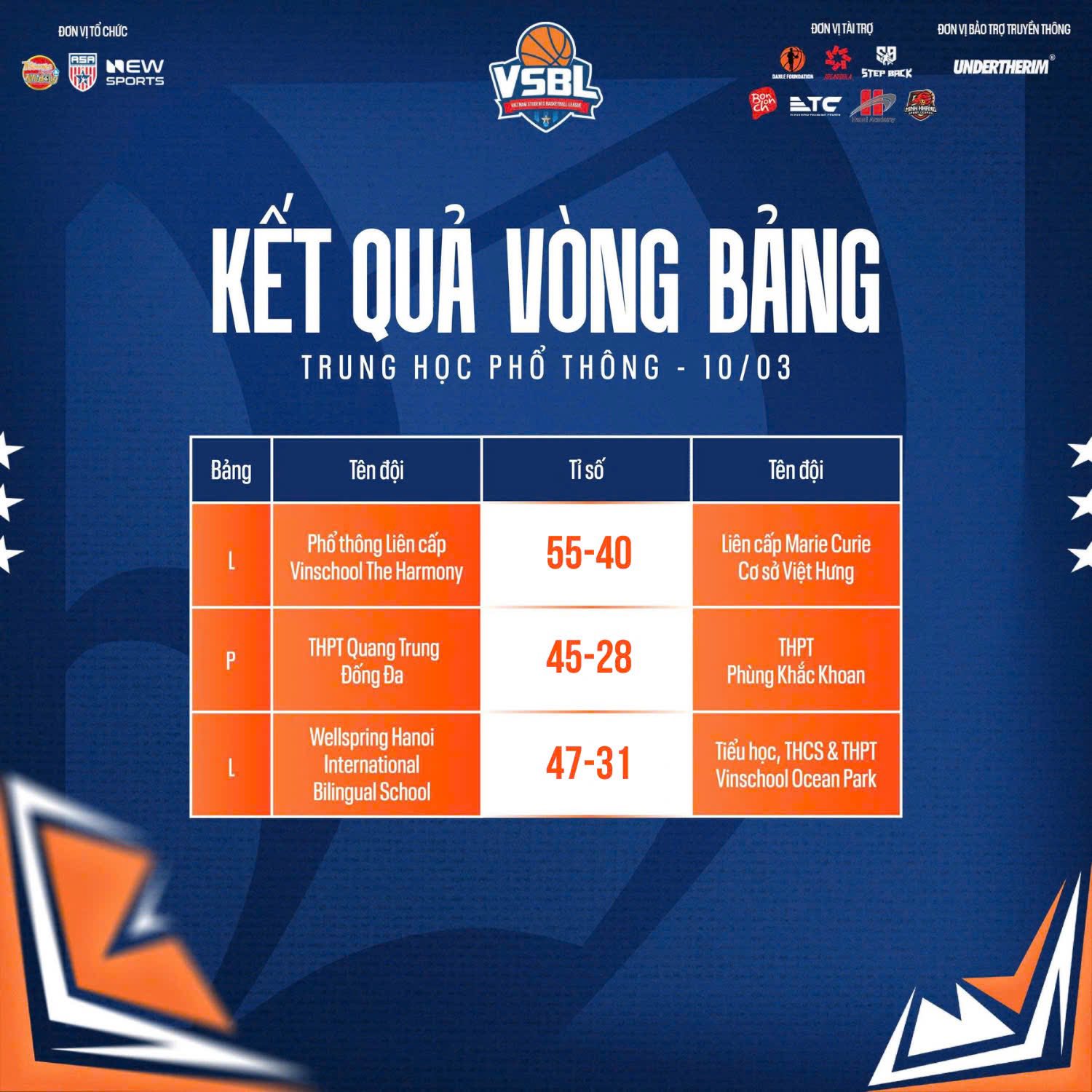Đội giành chiến thắng đã cho thấy bản lĩnh vững vàng và sự chuẩn bị kỹ lưỡng, trong khi các đối thủ cũng thể hiện tinh thần thi đấu kiên cường. Tại VSBL, mỗi trận đấu không chỉ là cuộc cạnh tranh về điểm số mà còn là nơi các đội bóng thể hiện ý chí và niềm tự hào khi đại diện cho ngôi trường của mình.