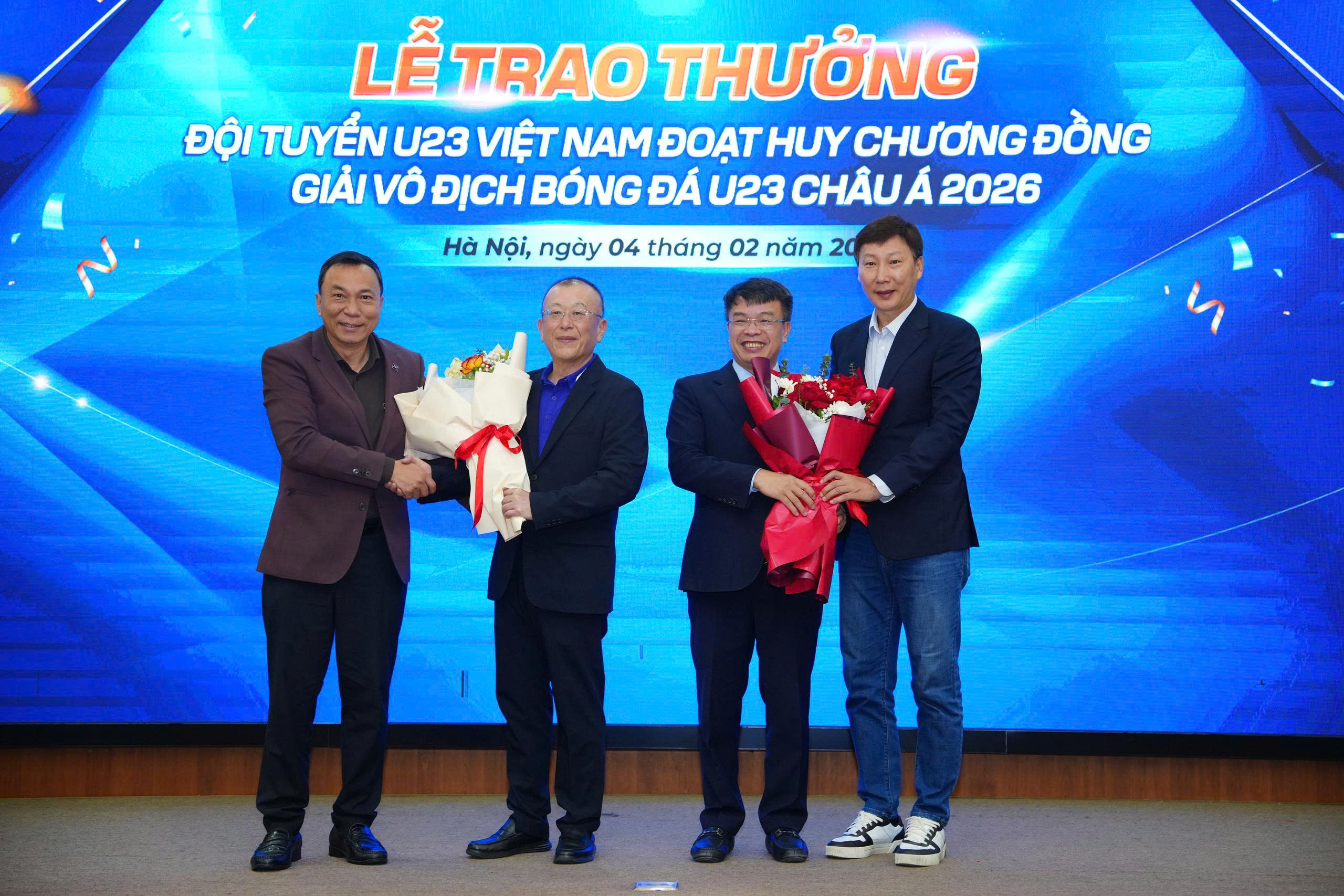 Phát biểu tại buổi trao thưởng, ông Nguyễn Văn Phú – Tổng Thư ký LĐBĐVN khẳng định thành tích Huy chương Đồng tại Vòng Chung kết giải bóng đá vô địch U23 châu Á 2026 là kết quả của quá trình chuẩn bị nghiêm túc, tinh thần thi đấu quả cảm và sự đoàn kết của toàn đội. Các cầu thủ U23 Việt Nam đã thể hiện bản lĩnh, khát vọng, ý chí vượt khó và tinh thần cống hiến hết mình vì màu cờ sắc áo. Đây không chỉ là niềm tự hào của bóng đá Việt Nam, mà còn là nguồn cảm hứng tích cực đối với thế hệ trẻ cả nước, khẳng định hướng đi đúng đắn trong công tác đào tạo, phát triển bóng đá trẻ.