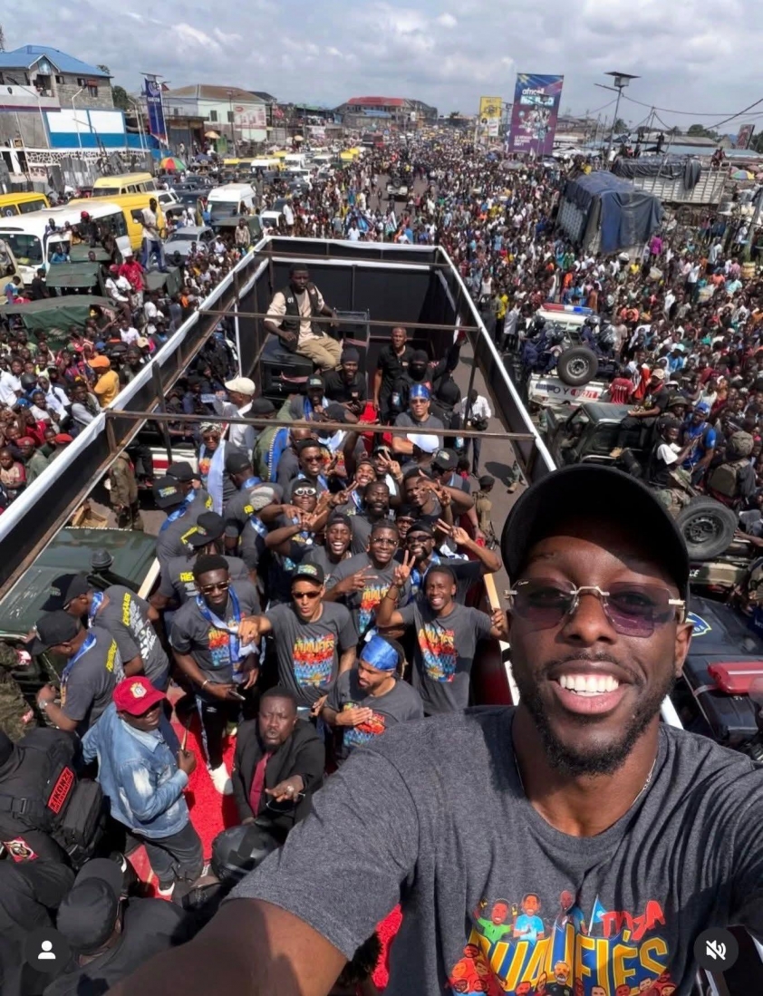 Các cầu thủ CHDC Congo diễu hành ăn mừng trong vòng tay người hâm mộ