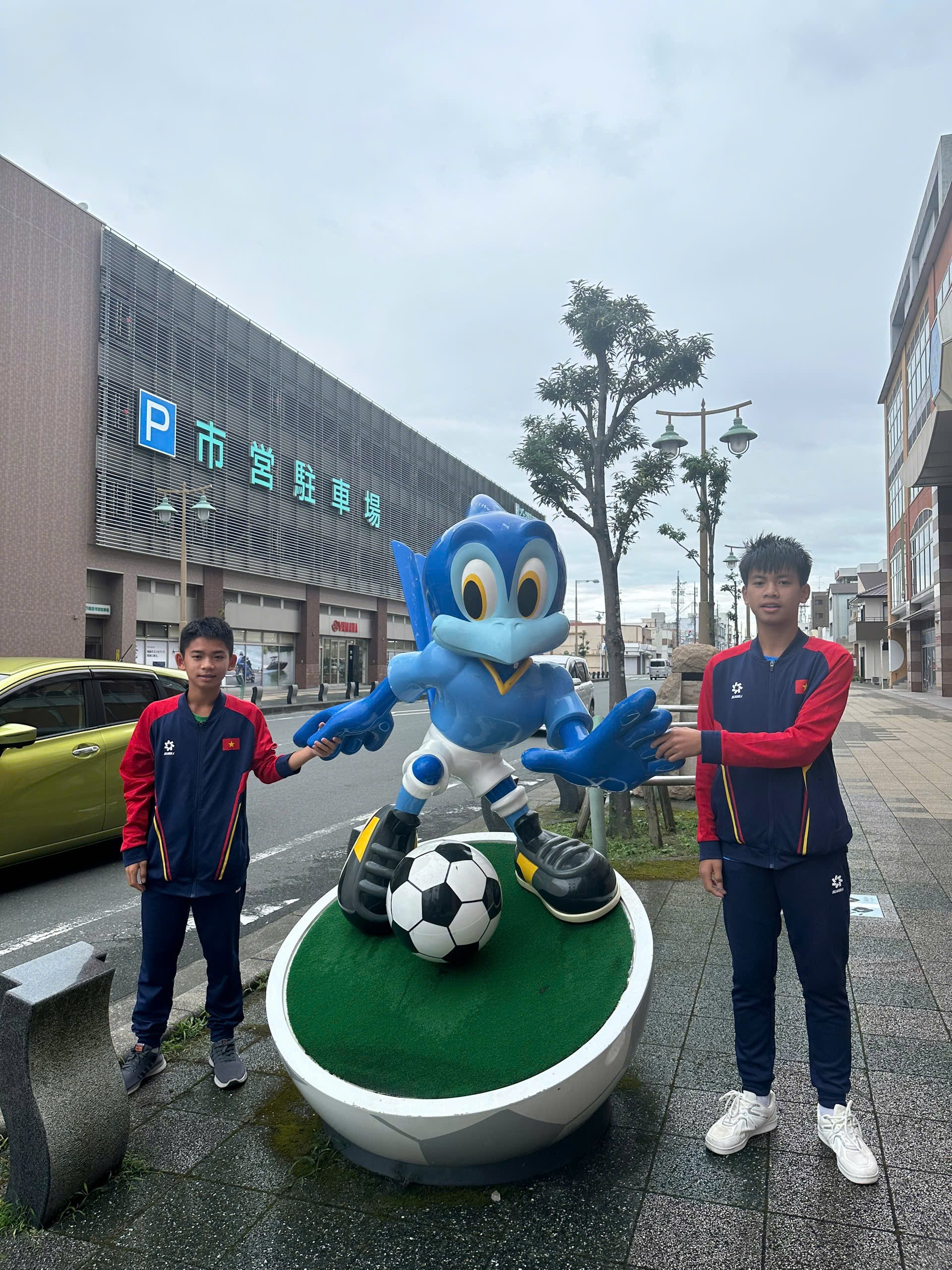 Chiều tối, hai cầu thủ U13 của ta đã được chính thức giao lưu, tập luyện đá bóng với các bạn U13 Júbilo. Những món quà nhỏ xinh, mang đậm nét văn hóa Việt Nam đã được gửi tặng tới các bạn trong đội bóng Nhật Bản. Trước sự chào đón nồng nhiệt của các cầu thủ U13 Júbilo dường như khoảng cách giữa hai nền bóng đá, hai nền văn hóa, hai quốc qia Á Đông đã không còn, các bạn xích lại gần nhau đầy gắn kết.