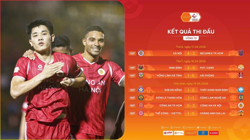 Vòng 19 V.League 1 2025/26 tiếp tục chứng kiến cuộc đua vô địch diễn ra đầy hấp dẫn khi các đội nhóm đầu đều không bỏ lỡ cơ hội tích lũy điểm số. Trên sân của Công an TP.HCM, Công an Hà Nội đã thể hiện đẳng cấp của đội đầu bảng bằng chiến thắng thuyết phục 3-0. Dù phải làm khách, thầy trò HLV Mano Polking vẫn kiểm soát hoàn toàn thế trận và cho thấy sự vượt trội về chất lượng đội hình lẫn bản lĩnh thi đấu.