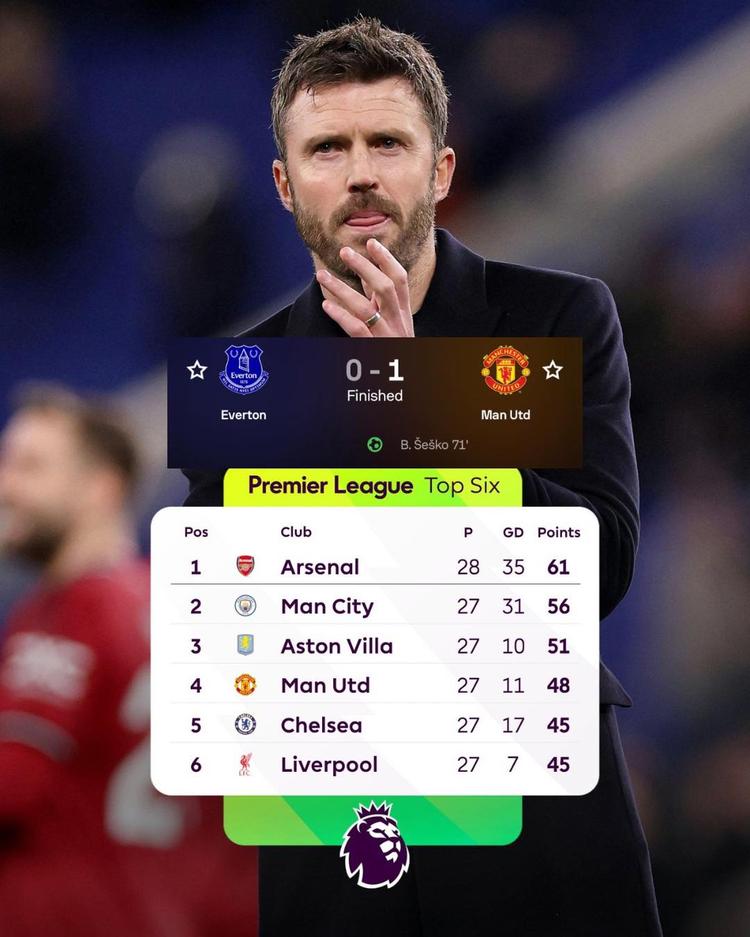 Dấu ấn lớn nhất trong chuỗi thăng hoa này đến từ sự thay đổi trên băng ghế huấn luyện. Kể từ khi Michael Carrick tiếp quản đội bóng, MU thi đấu thực dụng và cân bằng hơn. Thay vì kiểm soát bóng mạo hiểm, đội hình được tổ chức chặt chẽ, ưu tiên phòng ngự chắc chắn và phản công tốc độ. Bàn thắng của Sesko trước Everton là minh chứng rõ ràng cho cách tiếp cận này.